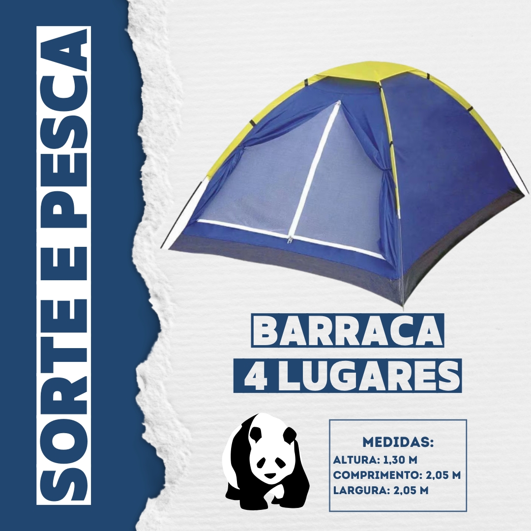 Comporta até 4 pessoas em saco de dormir ou colchão.